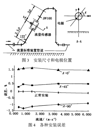 2)實驗證明電極軸線45°安裝比傳統水平安裝(A=0°)受彎管流動擾動影響有很大改善。