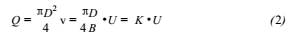 式(1)說明,導(dǎo)體在磁場(chǎng)內(nèi)作切割磁力線運(yùn)動(dòng),導(dǎo)體兩端產(chǎn)生的感應(yīng)電動(dòng)勢(shì)的大小與磁感應(yīng)強(qiáng)度B成正比,與導(dǎo)體的長(zhǎng)度D成正比,與導(dǎo)體運(yùn)動(dòng)的速度v成正比。由式(2)可知液體的體積流量與感應(yīng)電動(dòng)勢(shì)成正比,這就是酒精流量計(jì)的設(shè)計(jì)原理。